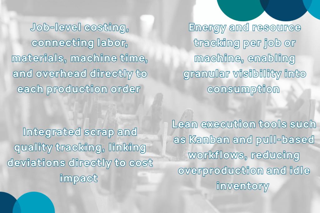 Because operational events feed directly into the ERP in real time, cost is no longer estimated after the fact — it is measured at the source.